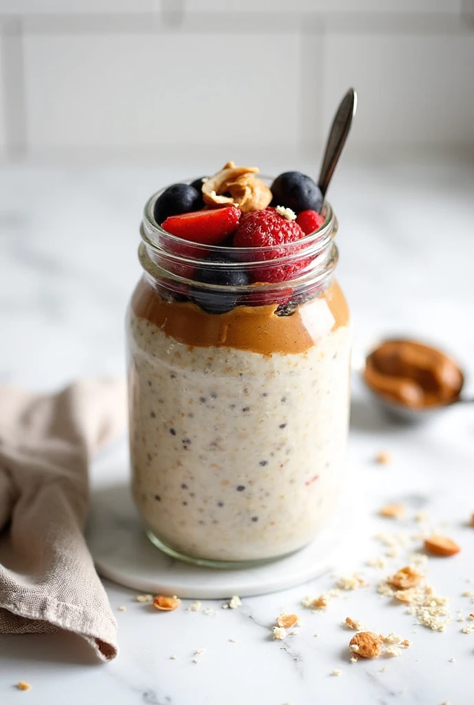- Combine rolled oats, almond milk, and protein powder in a jar.
