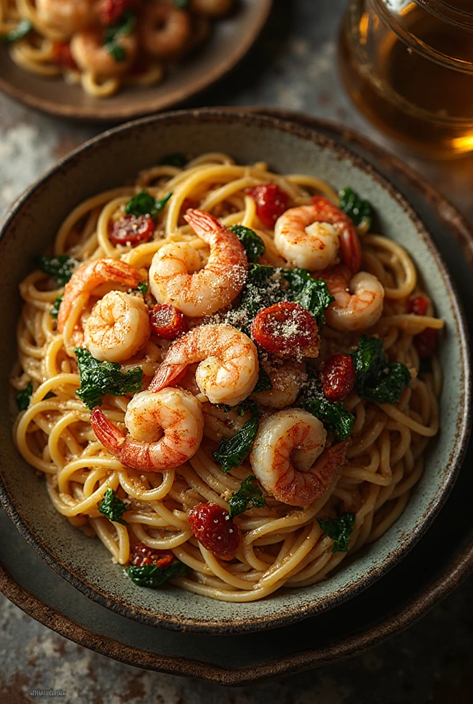 4. Creamy Tuscan Shrimp Pasta 🍤🍝